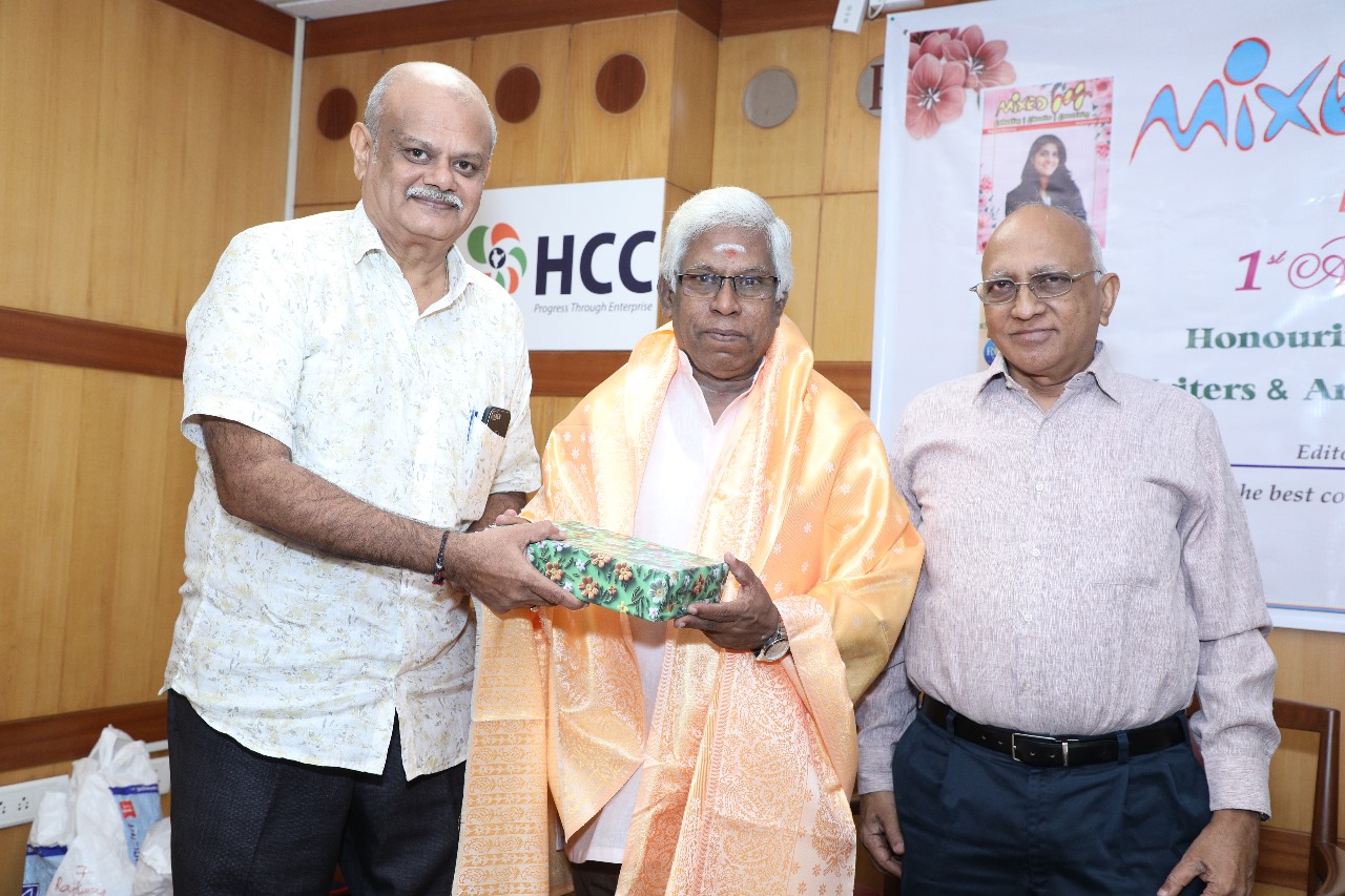 Ramki (residing in Porur, Editor of Mixed Bag Digital Magazine) celebrated first anniversary of Mixed Bag digital Magazine on Sept.14 at HCC Auditorium, Greams Road. ‘The Turning Point’ book by P.V.Rajakumar was released in the event. Dr.S. Rammohan, IRAS Retd., released the book and received by P.V. Vaidialingam, IRAS Retd., and Dr. A.V. Rajagoplan. P.V. Rajakumar felicitated Mixed Bag Editor Ramki, Artists Shyam and Deva.