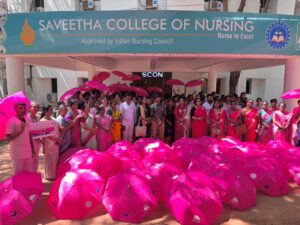 Saveetha College of Nursing & India Turns Pink jointly together created Brest Cancer awareness on Pinktober check, screen, and prevent initiative done by B.Sc. Nursing final year students on Oct.30 at lecture hall.
