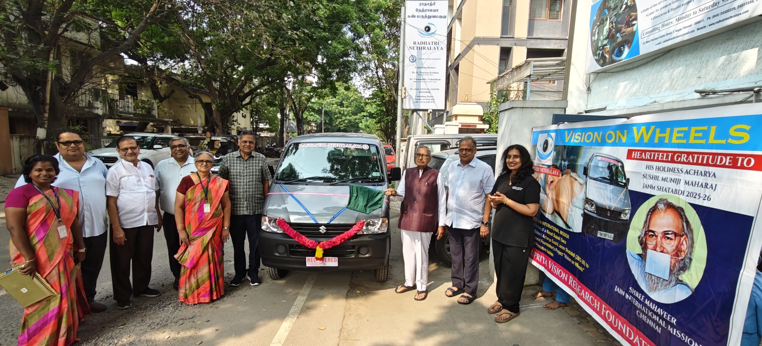 Trustees of Shri Mahaveer Jain International Mission, Chennai donated a van to Gurpriya Vision Research Foundation, the public charitable trust of Radhatri Nethralaya tertiary eye care hospital, Chennai on Nov.15.