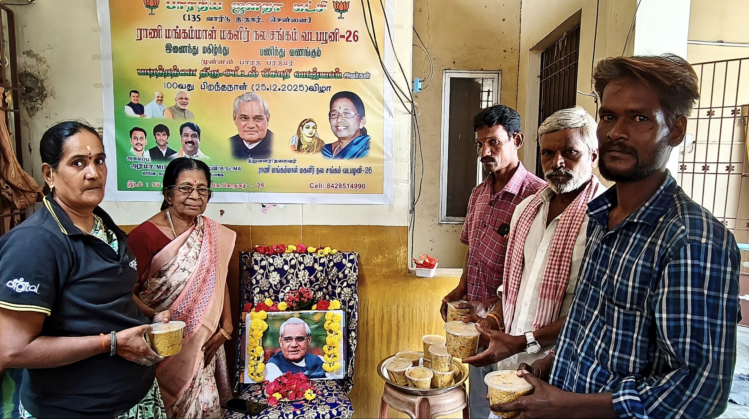 The members of Rani Mangamagal Welfare Association at Corporation 135ward, Venkatesapuram, Vadapalani organised and celebrated Former Prime Minister of India, Bharathi Ratna Atal Bihari Vajpayee 100th birthday on Dec.25.