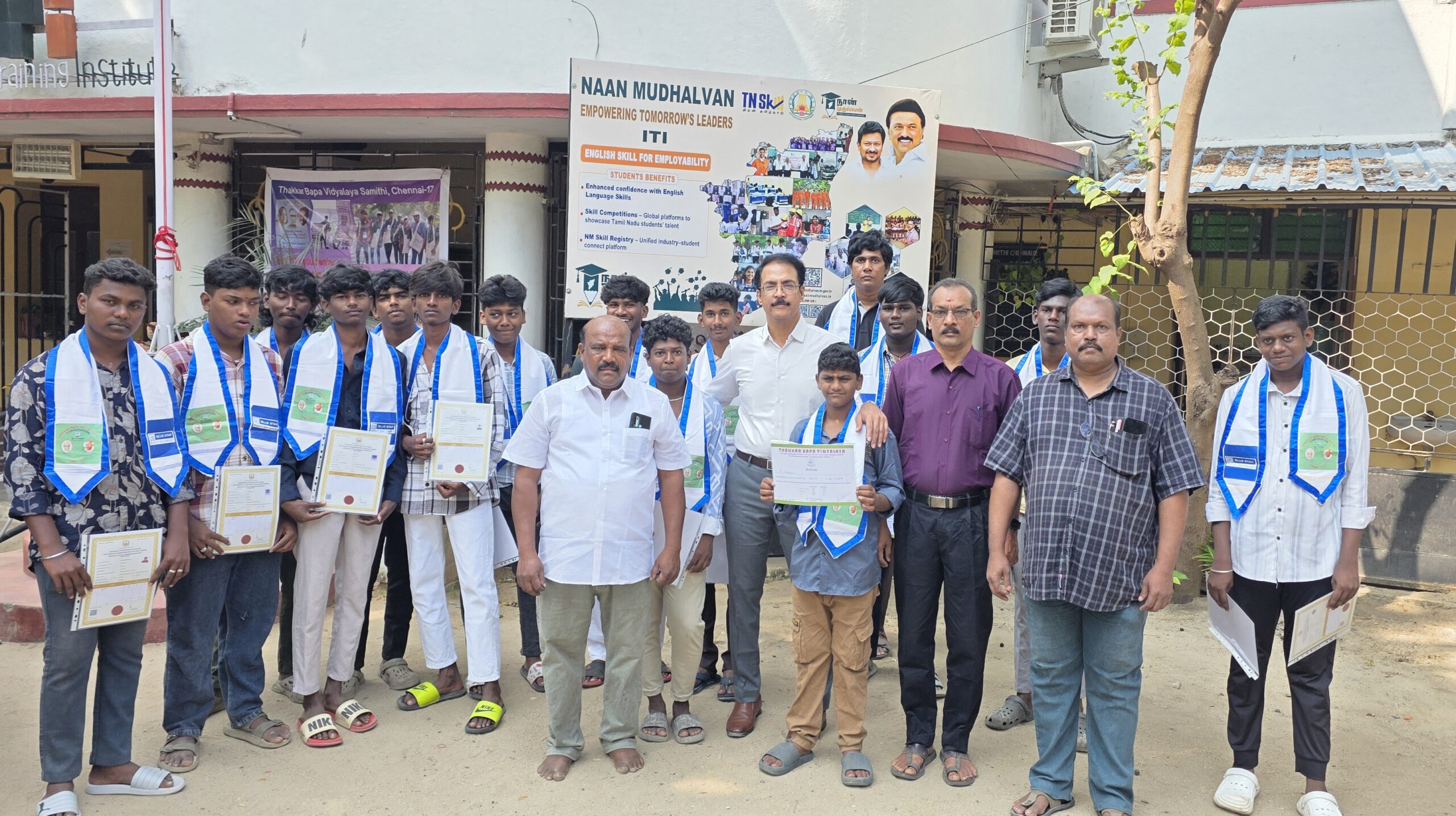 Dr.M.S. Shanmugam IAS., (Secretary to Chief Minister of Tamil Nadu) said that you should have an aim and work towards achieving it. He congratulated all those who have completed the training successfully and appealed that they should not stop with this but continue to go to higher levels. He said AI is replacing everything. But he added that Plumber and carpentry work is to be done by the manpower only. He said in Japan the majority of them are senior citizens. There is a lot of scope for jobs. Many Engineering colleges are teaching Japanese. He suggested learning as many languages as possible based on the need. He said he will tie up with start up missions, who are helping to become self-employed.