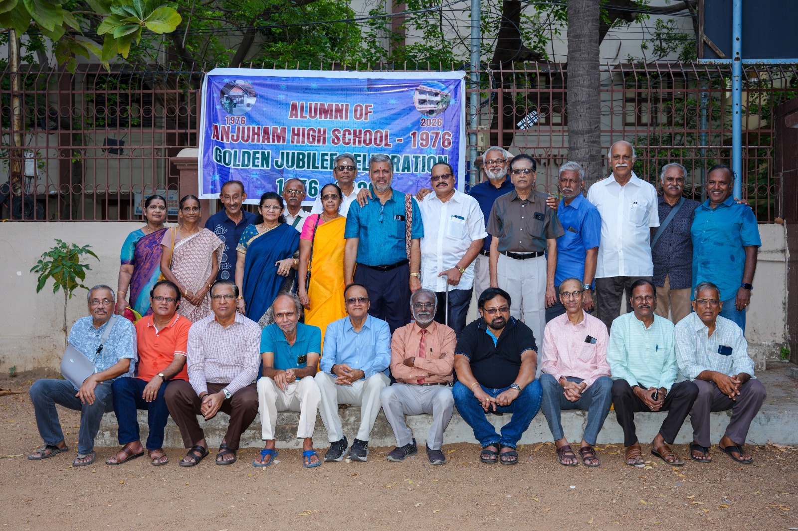 Golden jubilee celebration of alumini students The alumni of 1975-76 SSLC batch passed out from Anjuham Higher Secondary School, West Mambalam celebrated their Golden Jubilee year at the school premises in the presence of the Headmaster Natana Sabapathy and Rtd. Head Master Ramachandran, who was their Mathematics teacher and other teachers followed by a lunch at a hotel in Ashok Nagar. The function was attended by the old 1976 batch students who are now above 65 years and were in different good professions. The participants shared their old memories of their school days and complemented the school’s discipline, dedicated teachers, which helped them to lead a successful life. It was a great occasion to see such seniors making their tribute to their school on their reunion.